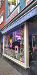 Deinen Royal-Donuts-Shop findest Du in der Berger Straße 98 (60316, Frankfurt am Main). Das ist im Herzen von Frankfurt in der längsten Einkaufsmeile der Stadt, nahe der U-Bahnhaltestelle „Hö-henstraße“. Dem Einkaufstrubel der Berger Straße kannst Du leicht entgehen – zum Beispiel im na-hegelegenen Bethmann Park oder im Zoo Frankfurt, den Du von uns aus in nur 10 Minuten zu Fuß erreichst.