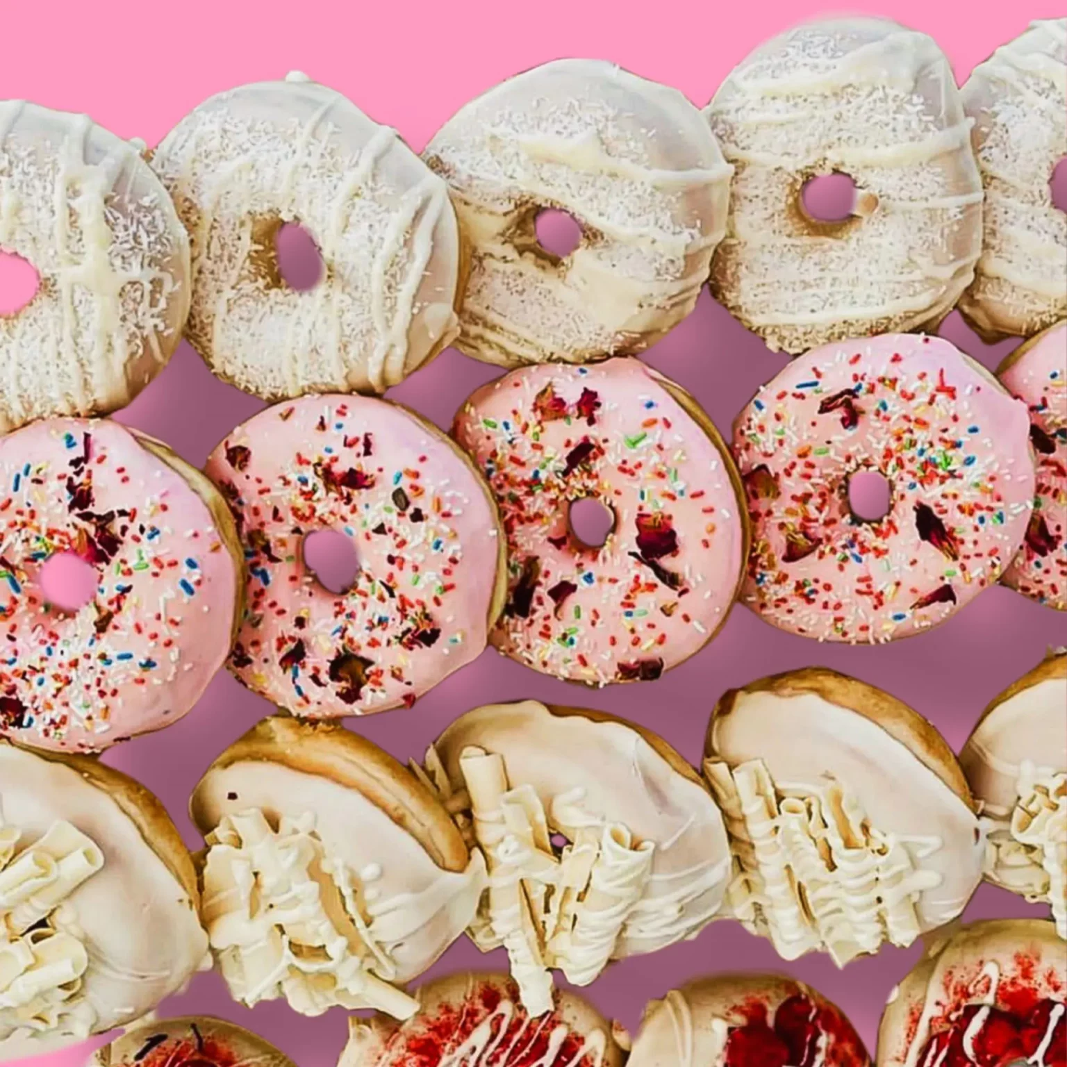Bei Royal Donuts ist der Name Programm: Wir bieten Dir eine königliche Auswahl an extravaganten Donut-Kreationen. Täglich frisch zubereitet und von Hand verziert ist jeder Donut ein Einzelstück und wartet nur darauf, von Dir gekostet zu werden.