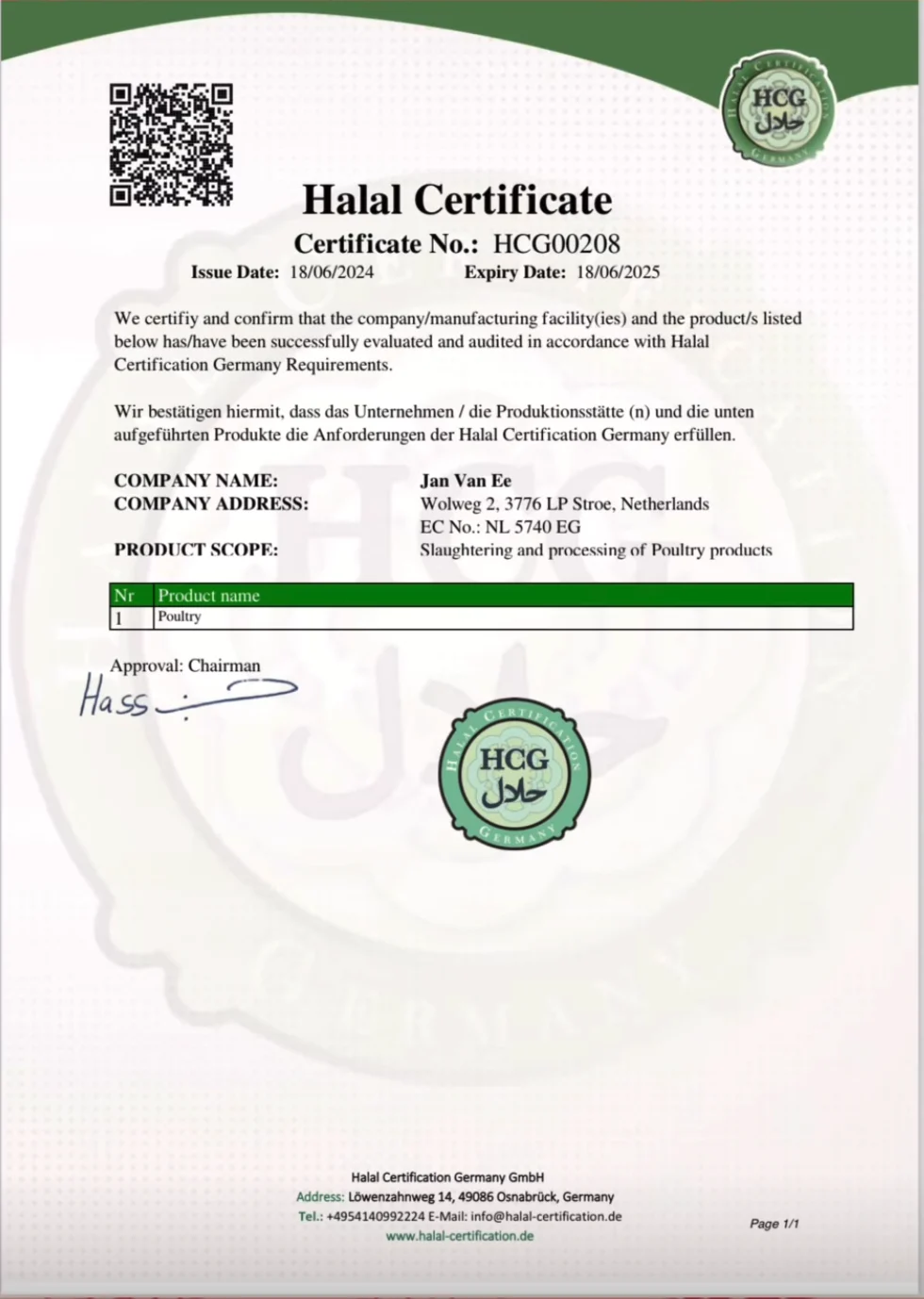 Halal Zertifikat hochladen