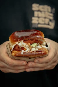 Makkaroni, al dente zubereitet… dazu noch die vermutlich einer der besten Käsesaucen, ein Hähnchenschnitzel nach traditionellem Rezept und viele leckere Toppings und Saucen zum verfeinern. Diese Geschmacksexplosion musst du probieren!!! Komm‘ vorbei und überzeuge dich selbst. Wir freuen uns dich zu begrüßen.